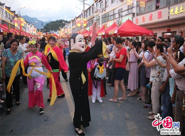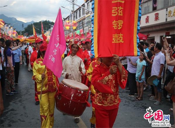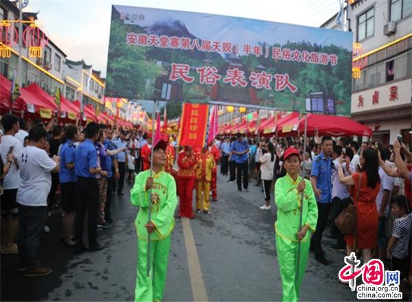 小鎮(zhèn)很熱鬧。小鎮(zhèn)現(xiàn)已入駐了十幾家大型連鎖超市,500多家賓館飯店,300多家購(gòu)物店。每到雙休日,操著各色口音的四海賓客在街上蹓跶、徜徉,或在超市購(gòu)物店里選購(gòu)精美的土特產(chǎn),或在酒店里品嘗著山珍野味,或在KTV里痛快豪嗓,或圍著篝火歡歌勁舞,有的干脆就光著膀子在露天的小吊鍋前劃拳行令,恣意灑脫,好不愜意。每年農(nóng)歷六月初六,天堂寨都要舉辦隆重的天貺節(jié),天堂寨鎮(zhèn)政府門(mén)前的一公里主街道兩邊擺起了長(zhǎng)龍似的紅色帳篷,“百家吊鍋宴”成為中外游客免費(fèi)品嘗天堂寨美食的饕餮盛宴。人們一邊喝著小吊美酒,吃著山珍美味,一邊欣賞著穿街而過(guò)的威風(fēng)鑼鼓、騰龍舞獅、儺戲花船、獨(dú)輪推美女、花棍打癡郎等不斷推陳出新的民俗風(fēng)情表演。酒足飯飽之后,再到政府廣場(chǎng)觀(guān)看精彩紛呈的文藝節(jié)目。一時(shí)間,人山人海,把一個(gè)千米“長(zhǎng)街”擠得水泄不通;歡聲笑語(yǔ),把一個(gè)深山小鎮(zhèn)匯成了歡樂(lè)的海洋……