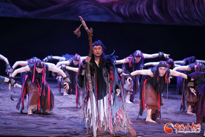 據(jù)悉,該劇由序《坤·農(nóng)耕》、第一幕《乾·天祭》、第二幕《際會(huì)》、第三幕《天梯》和尾聲《太極》組成,化用“黃帝問(wèn)道”的典故,以軒轅氏(黃帝)與嫫母(黃帝次妃)的真摯愛(ài)情為主線,將傳統(tǒng)八卦之各卦象塑造為性格各異的各色人物,從他們恩愛(ài)情仇中,表現(xiàn)先民們對(duì)人與自然的探尋、理解和追求,最終在崆峒山智者廣成子的點(diǎn)撥下,五行八卦各歸其位,軒轅氏與嫫母完美結(jié)合,呈現(xiàn)出一幅天人合一、萬(wàn)類(lèi)呈祥的農(nóng)耕文明畫(huà)卷。