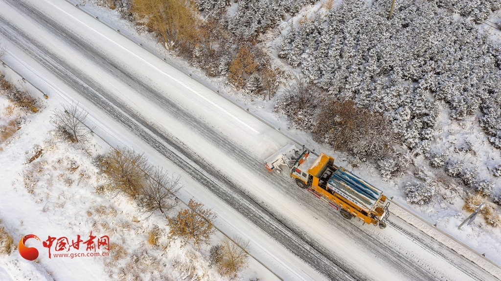 12月12日,甘肅省張掖公路局除雪車輛在國(guó)道227線進(jìn)行除雪作業(yè)。