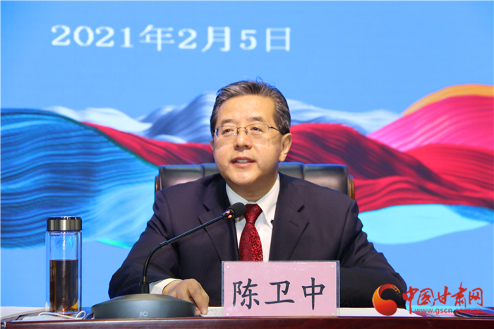 中國甘肅網(wǎng)2月5日訊 (本網(wǎng)記者 張?zhí)m琴 文/圖)2月5日上午,2021年全省文化和旅游局長視頻會議在省會蘭州召開。與往年不同的是,這次會議貫徹落實省委、省政府的要求,蘭州以外的13個市州以視頻會議形式參會。整個會議簡潔、務(wù)實、高效,旨在學習貫徹全國宣傳部長會議、全國文化和旅游廳局長會議、省委十三屆十三次全會暨省委經(jīng)濟工作會議、省“兩會”和全省宣傳部長會議精神,總結(jié)2020年主要工作,安排2021年重點任務(wù)。甘肅省委宣傳部副部長,省文旅廳黨組書記、廳長陳衛(wèi)中在會上講話,向全省“文旅鐵軍”發(fā)起號召,“干字當頭”的決心引發(fā)全場熱烈反響。