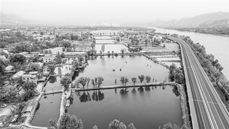 在永靖縣城,沿新修的濱河路西行,一路上芳草茵茵、楊柳依依,心曠神怡。這里是鹽鍋峽水庫的上游,水面寬闊,水速平穩(wěn),形成了許多池塘。碧水映襯著蘆葦、荷葉,遠山相依著藍天、白云,風(fēng)光秀麗、景色宜人,是假期休閑的好去處。