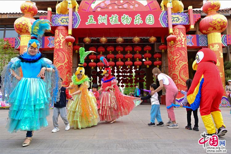 同期進行的文化演藝活動,今年在內容上也更加豐富,除了傳統(tǒng)地道的玲瓏舞龍獅、威風鑼鼓、民族春花漫舞秀、木蘭扇秀、氣勢磅礴的腰鼓等,還增添了小朋友喜愛的趣味小丑專場表演、卡通人偶巡游、南宮曉樂隊演出,大小朋友還可以一起動手體驗扎染和茶道的樂趣。此外,在南宮古風市集中,漢服愛好者既可拍照打卡,又能挑選琳瑯滿目的國潮商品和小吃,盡享國風游園的春之韻。