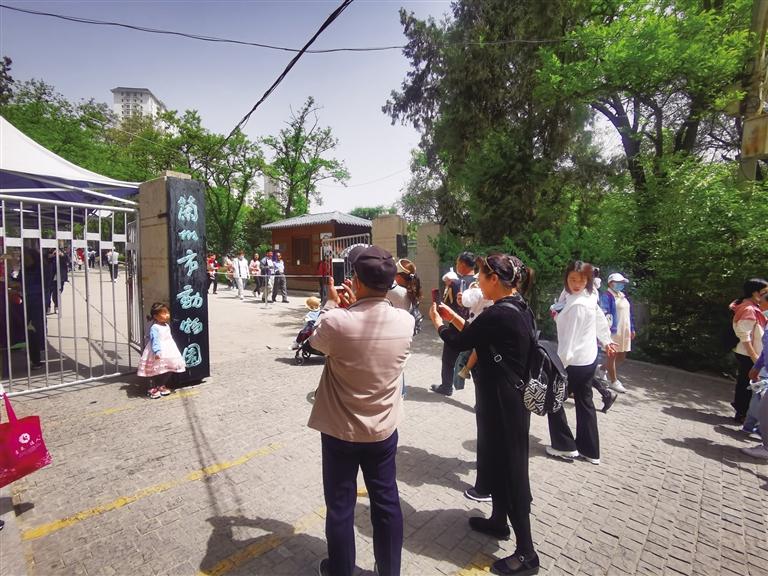 “我要和動(dòng)物園的大門合影” “快來(lái)給我和‘蘭州市動(dòng)物園’的大牌子拍張照”……5月7日10時(shí)許,前往蘭州市動(dòng)物園游玩的市民絡(luò)繹不絕,大門口懸掛著的略顯斑駁的黑底綠字的“蘭州市動(dòng)物園”的門牌,仿佛是最能觸動(dòng)人們記憶的“坐標(biāo)點(diǎn)”,大家排隊(duì)再和它照張相成為進(jìn)園的固定儀式。