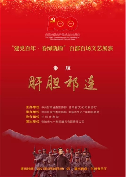 中國甘肅網(wǎng)5月28日訊(本網(wǎng)記者 宋芳科)5月30日晚,剛剛斬獲第六屆甘肅戲劇紅梅獎大賽“紅梅劇目獎”第一名的好成績的秦腔戲《肝膽祁連》,將在蘭州音樂廳精彩上演?!陡文懫钸B》以真實的歷史故事改編,講述了民主人士高金城營救紅西路軍戰(zhàn)士的感人故事。屆時,中國甘肅網(wǎng)將現(xiàn)場直播,歡迎廣大網(wǎng)友點擊進(jìn)入直播間,重溫一段波瀾壯闊而又感人至深的歷史,一起向祁連英魂高金城致敬。