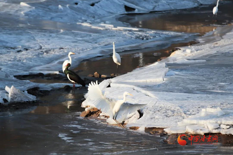 汭河水清山川美,鴛鴦白鷺入眼來,這是崇信縣汭河水域如今的自然寫照,自從河道變寬變干凈了,以前很少見的麻鴨、赤鴉成群結(jié)隊(duì)地在汭河河灘繁衍生息,還有白鷺、鴛鴦、黑鸛、蒼鷺、翠鳥等珍稀鳥類也從遠(yuǎn)方遷徙而來,安家汭河,伴著淙淙河水、晶瑩薄冰紛紛起舞,跳著水中芭蕾。