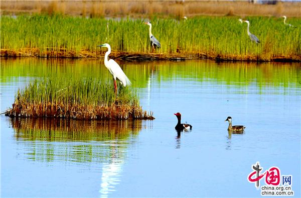 很多鳥(niǎo)類對(duì)生存區(qū)域極為挑剔,環(huán)境稍不如意,便會(huì)另覓佳處。這里水質(zhì)清冽,空氣純凈,湖草肥美,魚食豐盛,正是很多鳥(niǎo)類遠(yuǎn)途中的理想家園或行途驛站。據(jù)悉,全球九條候鳥(niǎo)遷徙路線中有三條路過(guò)中國(guó),其中有兩條遷徙路線在寧夏重疊,沙湖以其良好的自然生態(tài)環(huán)境,為眾多候鳥(niǎo)過(guò)境寧夏時(shí)提供了重要棲息繁衍地。