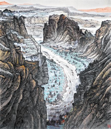黃河兩岸又春風(fēng)(中國(guó)畫) 劉曉輝