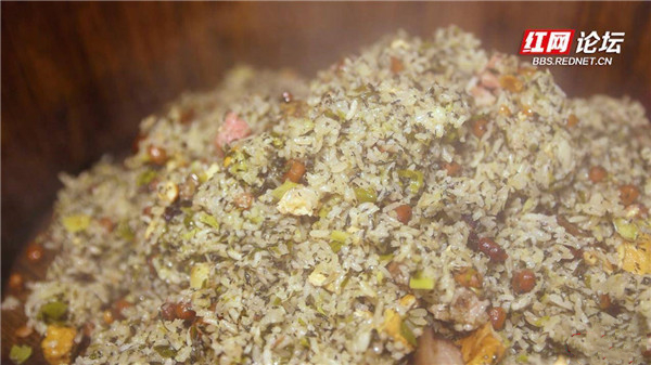 若是將鮮嫩的青蒿用石臼搗碎小炒,再與本地特產(chǎn)香糯米、切成小顆粒的臘肉一同上鍋蒸,就做成了湘西社飯。每逢春季社日,湘西地區(qū)農(nóng)民都要制作社飯祭祀土地神,祈求年景順利、五谷豐登、家運祥和,如今,亦成為人們“嘗春”的佳品。