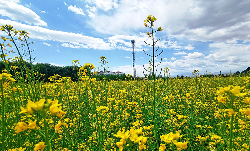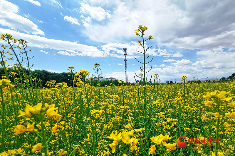 以大地為布,金黃的油菜花開滿鄉(xiāng)間,與鄉(xiāng)村民居交相輝映,構(gòu)成一幅美麗的鄉(xiāng)村畫卷,也開成了鄉(xiāng)村振興的“致富花”。去年,沙河鎮(zhèn)西寨村、五三村依托“一戶一塊田”高標準農(nóng)田建設(shè)后的便利條件,大力調(diào)整產(chǎn)業(yè)結(jié)構(gòu),積極引進專業(yè)合作社在本村建立蔬菜種植基地。今年,沙河鎮(zhèn)種植油菜300多畝,從5月中旬開始,油菜花便陸續(xù)開放,現(xiàn)在已經(jīng)進入全盛時期。