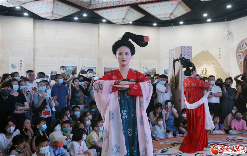 中國甘肅網(wǎng)6月11日訊(本網(wǎng)記者 程健 宋芳科)6月11日上午,值文化和自然遺產日到來之際,敦煌文化研究院在蘭州分院敦煌藝術館舉辦了“時代共進、人民共享”主題展,通過虛實融合敦煌石窟體驗、敦煌服飾展演、文創(chuàng)產品展示等,向廣大市民群眾全方位呈現(xiàn)了深厚的敦煌文化與莫高窟文化遺產。當天的活動,中國甘肅網(wǎng)全程進行了網(wǎng)絡直播。