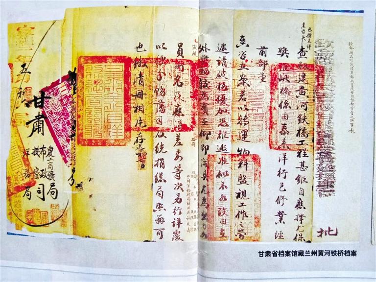 在古金城蘭州架設(shè)橫跨于黃河南北兩岸的鐵橋,曾是左宗棠的夢(mèng)想,只因當(dāng)時(shí)洋商索價(jià)過高而作罷。30年后,正值清末實(shí)行新政,黃河鐵橋在陜甘總督升允和彭英甲的任上創(chuàng)修成功。建橋過程慘淡經(jīng)營,艱苦備至,已人所共知。好在建設(shè)黃河鐵橋形成的檔案,歸檔于甘肅農(nóng)工商礦總局,沒有存于當(dāng)時(shí)的布政使司,幸運(yùn)地躲過了民國二年那一劫。甘肅農(nóng)工商礦總局后更名為甘肅省署實(shí)業(yè)廳,民國十六年(1927年)甘肅省政府改實(shí)業(yè)廳為建設(shè)廳,這些檔案存于建設(shè)廳。1949年7月,國民黨甘肅省政府逃離前發(fā)出緊急命令:“轉(zhuǎn)移前將政府檔案做緊急處理”,重要檔案進(jìn)行“焚毀、埋藏、轉(zhuǎn)移”,次要檔案“從速列冊(cè)銷毀”。只因倉皇逃離,未來得及銷毀。人民解放軍從解放蘭州的戰(zhàn)火中把包括鐵橋檔案在內(nèi)的許多檔案搶救出來,由蘭州軍管會(huì)接管。2002年,《蘭州黃河鐵橋檔案》入選首批《中國檔案文獻(xiàn)遺產(chǎn)名錄》。