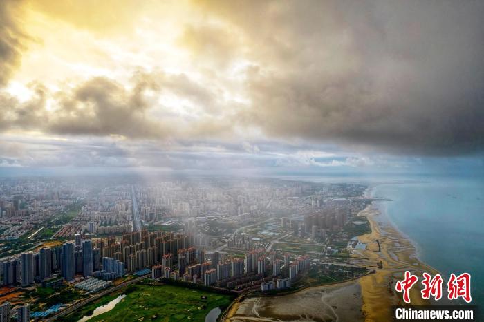 圖為陽(yáng)光穿過(guò)云層照耀北海市城區(qū)。 徐紹榮 攝