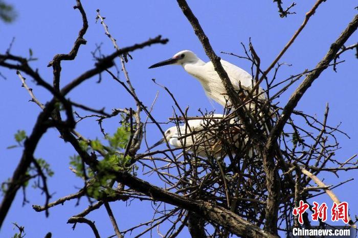 中新網(wǎng)菏澤7月19日電 (王曉新)山東省菏澤市曹縣地處魯西南,是一個(gè)濕地資源豐美、生態(tài)和諧的地方。在距離縣城16公里的魏灣鎮(zhèn)張康村,棲居著數(shù)千只白鷺。每年谷雨節(jié)氣前后,大量的白鷺像來訪的使者,如約飛至張康村,在村后的樹林中筑巢產(chǎn)卵,繁育后代。