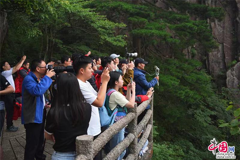 【點睛】在始信峰一處不起眼的觀景臺,每年有那么幾天都會出現(xiàn)非常有寓意的奇景,當?shù)厝朔Q為“鴻運當頭”。