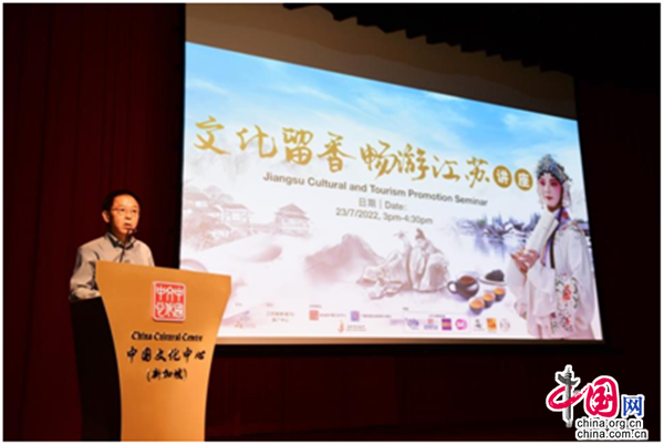 由江蘇省文化和旅游廳主辦、江蘇旅游(新馬)推廣中心協(xié)辦,新加坡中國(guó)文化中心、中國(guó)駐新加坡旅游辦事處及新加坡江蘇會(huì)全力支持的“文化留香·暢游江蘇”講座,于2022年7月23日(星期六)在新加坡中國(guó)文化中心4樓劇場(chǎng)舉行。江蘇省文化和旅游廳副廳長(zhǎng)李川通過(guò)連線(xiàn)參與本次活動(dòng),新加坡旅游局助理署長(zhǎng)(國(guó)際司)陳蕙敏、中國(guó)文化中心兼中國(guó)駐新加坡旅游辦事處主任肖江華、江蘇省駐新加坡經(jīng)貿(mào)代表處主任代表沈立國(guó),以及來(lái)自新加坡文化藝術(shù)界、旅游界、商界、社團(tuán)、新聞媒體及市民大眾等逾200名觀眾現(xiàn)場(chǎng)出席活動(dòng)。