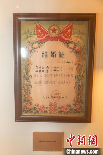 圖為博物館展出的建國(guó)初期的結(jié)婚證。 劉力鑫 攝