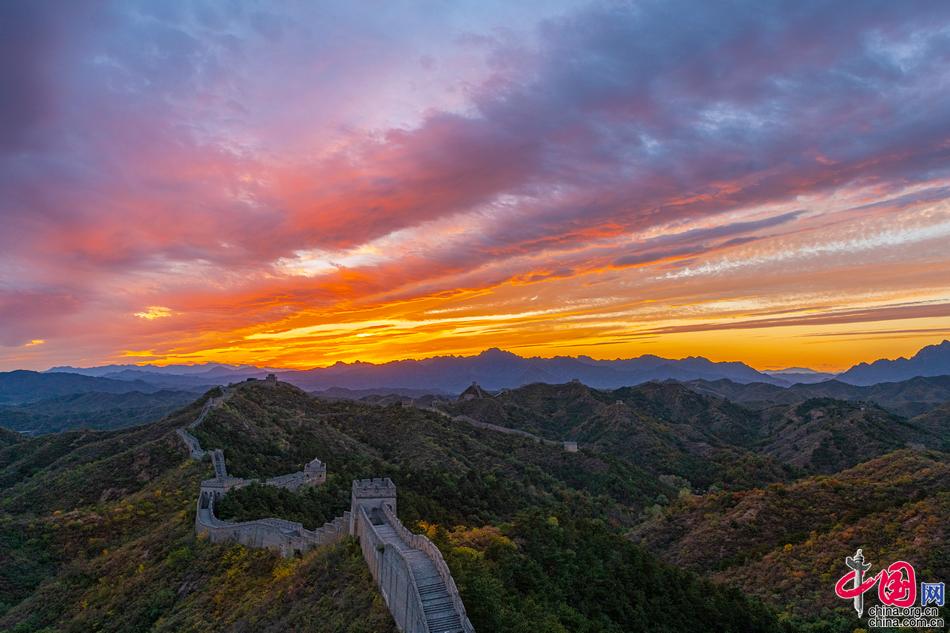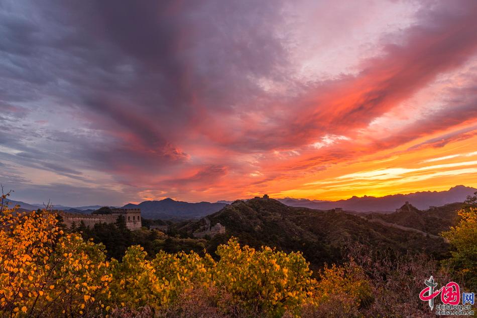 山巒起伏的古老長(zhǎng)城層林盡染,令人驚艷。