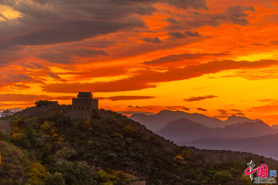 金山嶺長(zhǎng)城層嶺盡染萬山紅遍 最是秋好霜重色濃