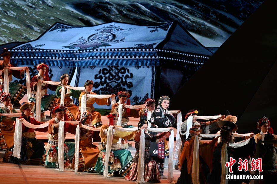 10月11日晚,大型新編歷史粵劇《文成公主》在廣東廣州大劇院首演。該劇以文成公主和親進藏的歷史事件為依據(jù)創(chuàng)作,講述了文成公主堅守吐蕃四十年,促進了吐蕃經(jīng)濟、文化的發(fā)展,加強了漢藏人民的友好關(guān)系。中新社記者 陳楚紅 攝