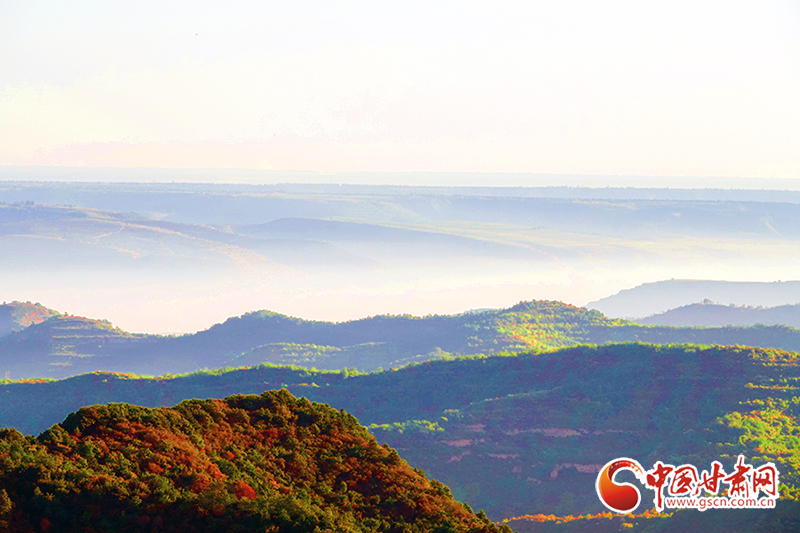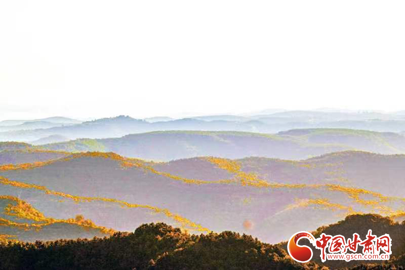初冬時(shí)節(jié),在夕陽(yáng)的映照下,平?jīng)鍪刑泼鄙绞〖?jí)森林公園云霧繚繞,山巒在云霧中若隱若現(xiàn)、如夢(mèng)如幻,呈現(xiàn)出仙境般美景。