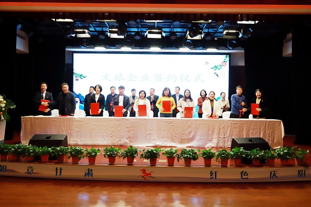 專題推介會上,由慶陽市文體廣電和旅游局黨組書記、局長郭麗君全面推介了慶陽文化旅游資源,慶陽旅游百事通國際旅行社總經(jīng)理毛永吉重點推介了慶陽旅游精品線路;重慶山水國旅、陜西中國旅行社等川、渝、陜、青、寧等省(區(qū)、市)旅行社與慶陽公共交通集團旅行社、慶陽文化旅游投資集團北豳風旅行社等20家旅行社,相互簽訂了“引客入甘肅游慶陽”客源輸送及慶陽旅游產(chǎn)品聯(lián)合開發(fā)合作協(xié)議。推介環(huán)節(jié)還組織進行了嗩吶演奏《沸騰的黃土地》、慶陽民歌《送吉祥》、南梁說唱傳統(tǒng)劇目《紅鳳先下山》以及民歌聯(lián)唱等極富隴東特色的文藝表演。推介會前,與會嘉賓還一起觀看了慶陽文旅形象及招商項目圖片展、非遺文創(chuàng)產(chǎn)品展。甘肅省文旅廳有關處室和省內(nèi)外旅行商、文旅企業(yè)、媒體記者代表,慶城縣政府、慶陽市重點景區(qū)、文旅企業(yè)等相關負責人共150余人參加。