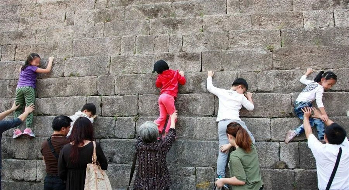 圖片不文明“破窗效應”:家長協(xié)助孩子攀爬城墻