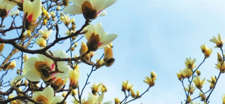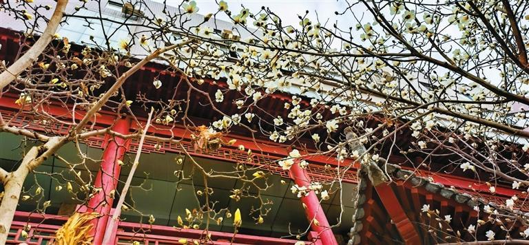 3月10日,記者途經(jīng)秦州區(qū)自由路玉蘭一條街時(shí)欣喜地看到,由東往西走,穿過刻有“秦風(fēng)在茲”的天水古城牌坊,滿巷漸次盛開的玉蘭花一樹樹玉樹臨風(fēng),一朵朵冰清玉潔。平房民居的屋頂上、脊獸斗拱邊,橫橫斜斜“躺臥”著若干膚白肌潤的花朵,借景為鄰靜觀細(xì)瞧,人與花似感心意相通,片刻間也能生出不少情趣來。