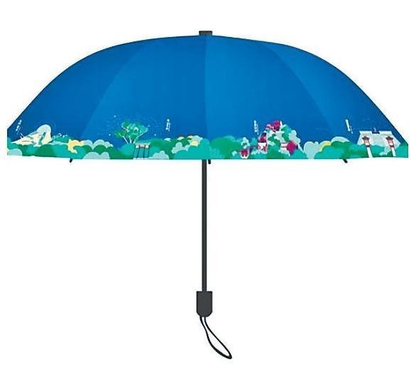 畫面是對天水文化的整合轉(zhuǎn)譯。靜謐的深藍(lán)夜色宛如舒緩溫柔的吟唱,點(diǎn)醒具有暗語的想象。連綿起伏的綠影又將目不暇接的八美之景串聯(lián)起墜于傘邊沿,呈現(xiàn)一種清新淡雅的格調(diào)。四字榜題作為光影與畫面間的調(diào)和劑潤化了視覺美感,使空間溢滿文人逸趣。簡潔平穩(wěn)的畫卷里隱含古雅山水的形象,靈動漂浮的畫卷里創(chuàng)立起意蘊(yùn)美學(xué)。