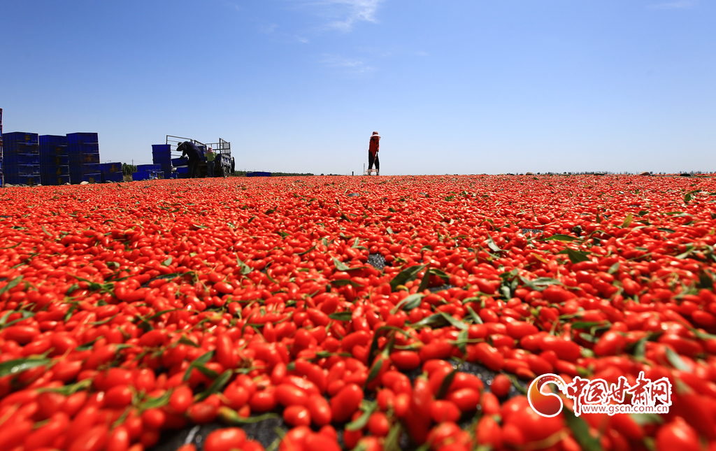 近日,嘉峪關(guān)市新城鎮(zhèn)一公司的1.89萬畝頭茬枸杞迎來采收季,枸杞種植戶搶抓晴好天氣采摘、拉運、晾曬枸杞,枸杞園內(nèi)外一派繁忙的豐收景象。