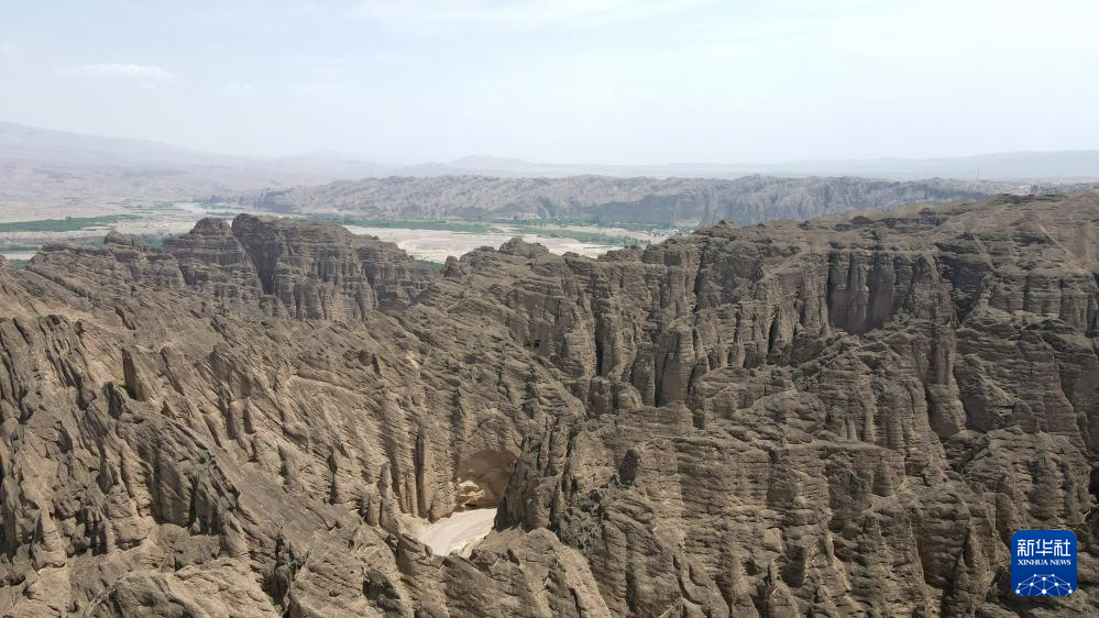 這是位于甘肅省白銀市景泰縣中泉鎮(zhèn)龍灣村的黃河石林景觀。黃河石林千峰競奇、峽谷蜿蜒,與黃河遙相呼應,形成山環(huán)水轉、動靜結合的自然奇觀(7月11日攝,無人機照片)。新華社記者 陳斌 攝