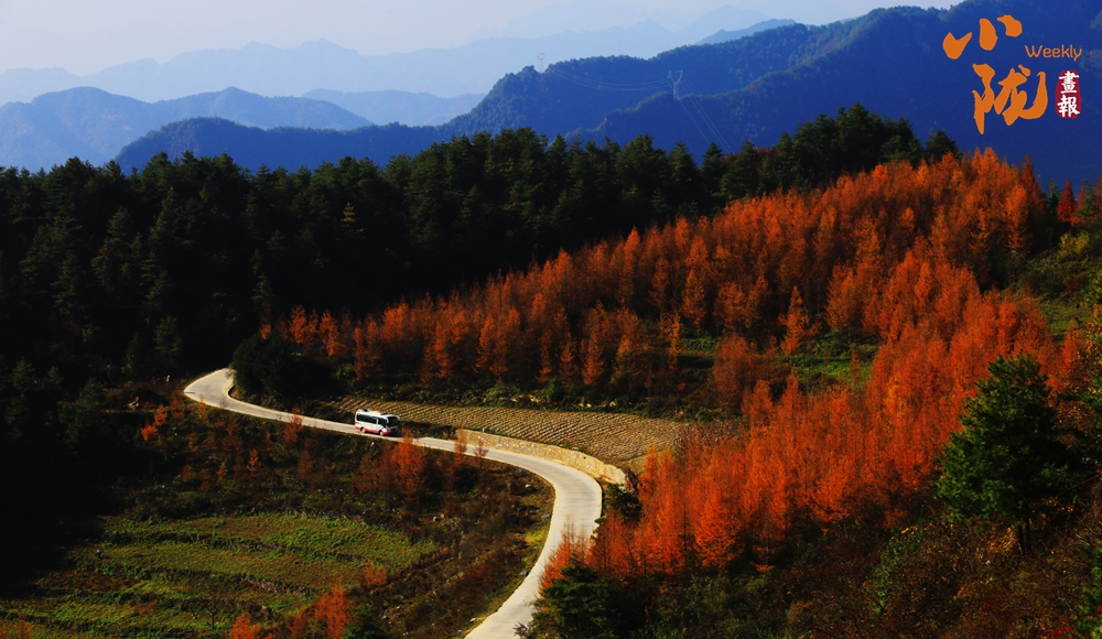這里樹樹皆秋色,金黃、火紅、翠綠、紫紅,相互交織,裝點出斑斕秋色。