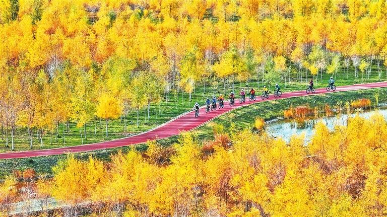 張掖奧林匹克森林公園成為市民健身休閑的好去處。新甘肅·甘肅日?qǐng)?bào)通訊員 王將