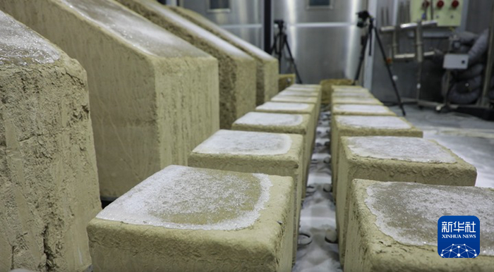 這是9月11日在敦煌研究院國(guó)家古代壁畫(huà)與土遺址保護(hù)多場(chǎng)耦合環(huán)境模擬實(shí)驗(yàn)室冬季倉(cāng)拍攝的正在試驗(yàn)中的土遺址監(jiān)測(cè)樣品。新華社記者 張智敏 攝