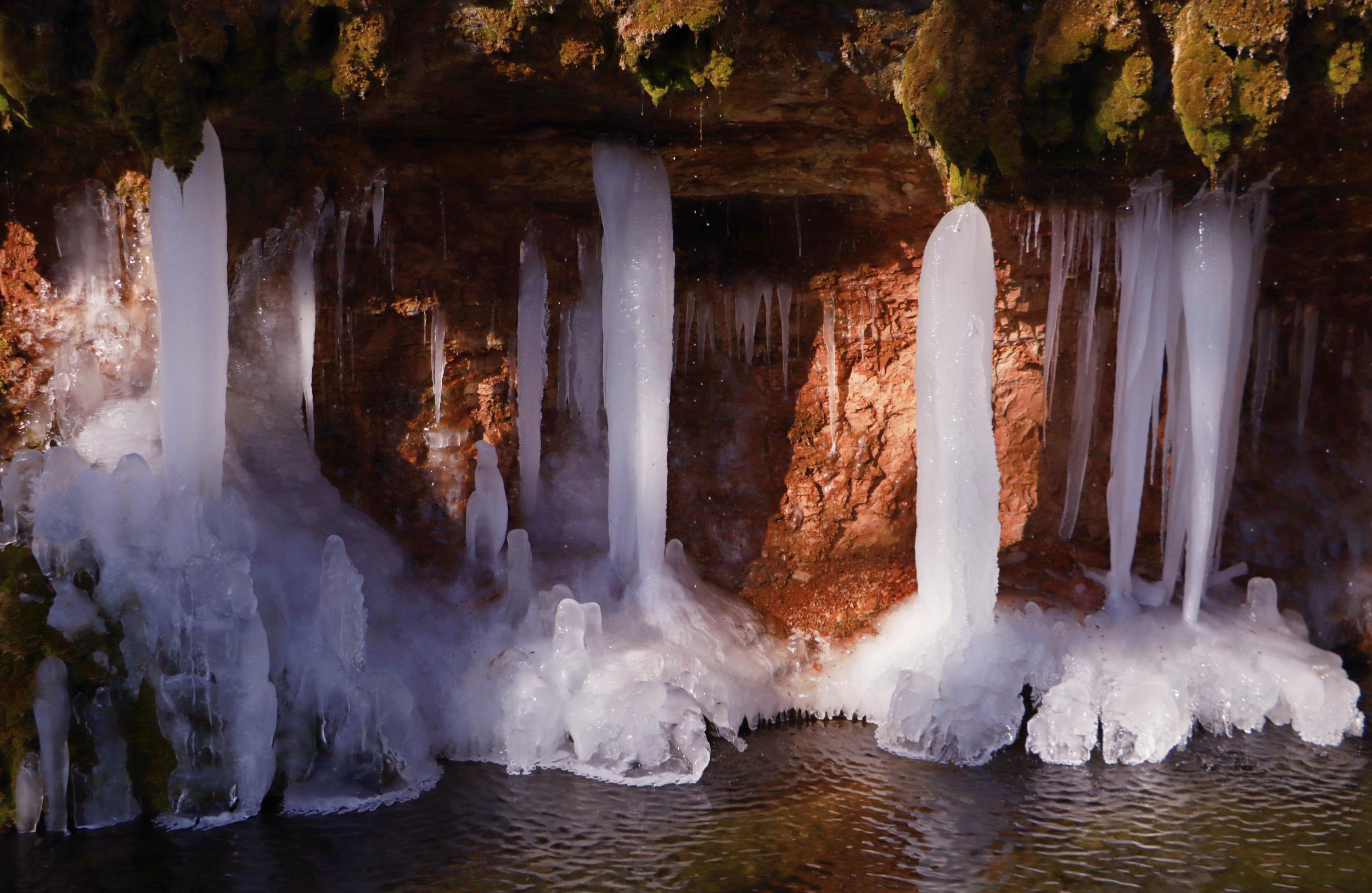 連日來,崇信縣持續(xù)降溫,AAAA級旅游景區(qū)龍泉寺泉水凝結(jié)成奇特秀麗的冰掛、冰柱、冰花美景,懸掛于山間,如萬把銀色寶劍垂吊,展現(xiàn)著冰肌雪骨的風(fēng)姿,似盞盞熒光閃爍,在陽光的照耀下熠熠生輝、耀眼奪目,引來不少游客拍照觀賞。(崇信縣融媒體中心記者:孫淑霞 張百耀)