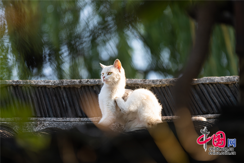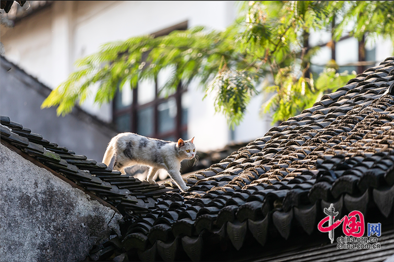 在毛孩子眼里,這就是包容一切活動的「游樂場」,片片青瓦上留下梅花印。或許你也該往古鎮(zhèn)的屋頂上瞧,檐角翹伸、清風古韻,讓人心曠神迷?;蛲侵回堃粯优噬细咛帲拼翱茨撬菢?,那木門青瓦,就是江南水鄉(xiāng)的具象。