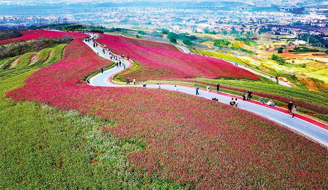 鄉(xiāng)村旅游是推進鄉(xiāng)村全面振興的重要引擎。圖為2023年10月10日,游人在陜西省西安市藍田縣九間房鎮(zhèn)峪口村蕎麥嶺賞花游玩。 新華社記者 劉瀟/攝