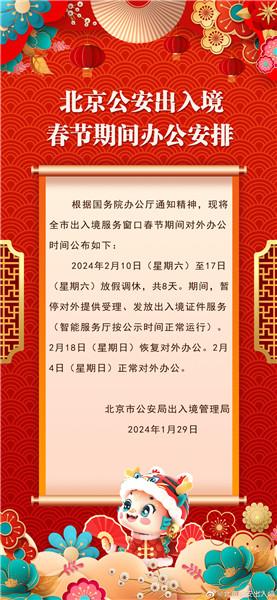 原標題:北京公安出入境管理局:大年初一到初八暫停辦公