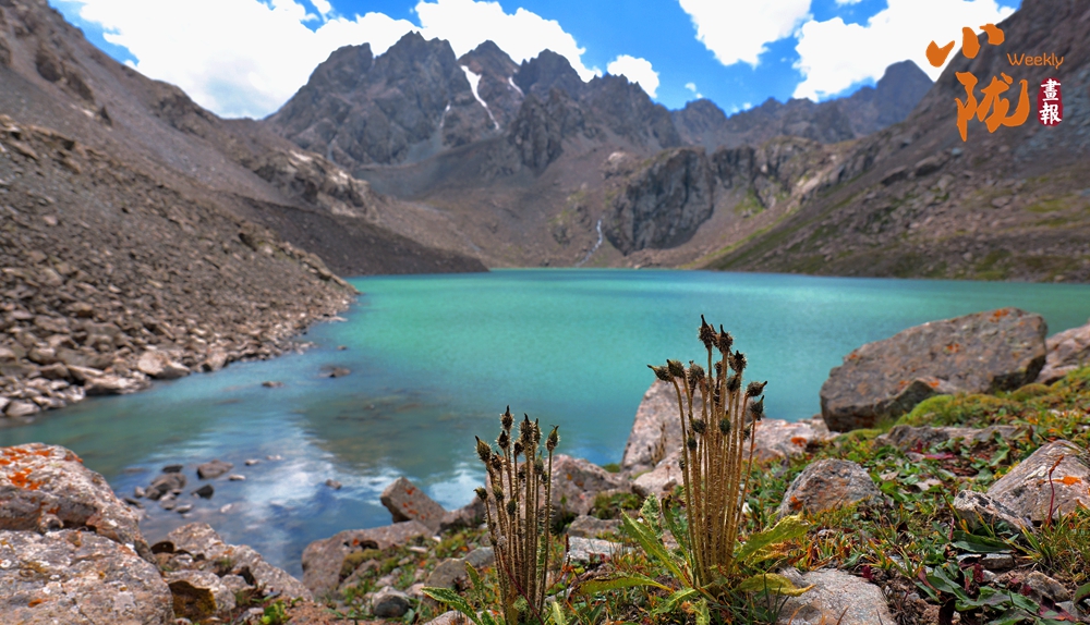 春天,冰川消融,天池池水碧綠,深不可測,宛如仙境。