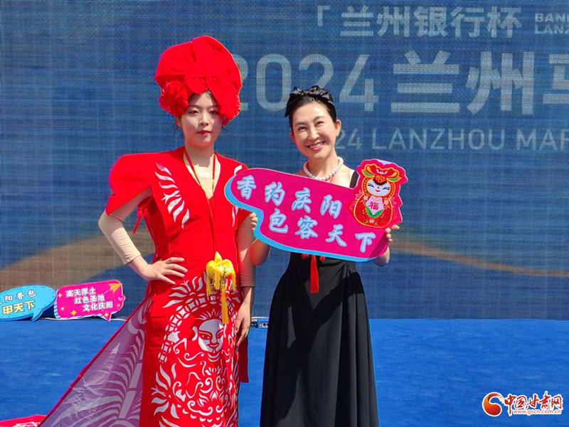 火紅的剪紙走秀,獨特的名俗文化吸引了眾多蘭州市民、“蘭馬”運動員和志愿者,大家紛紛拍照留念。