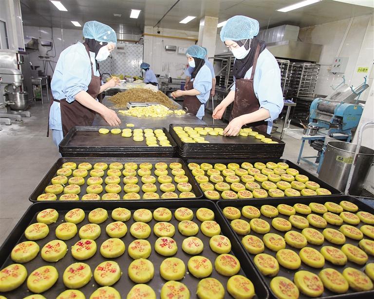 喝牡丹花茶,不能忽略牡丹花餅。蘊(yùn)有淡雅花香、濃郁情懷的鮮花餅,經(jīng)過腌制花醬、皮面包酥、壓模成型、烤制等工藝精心制成,層層酥皮裹著綿香的牡丹花醬,吃來清甜不膩。