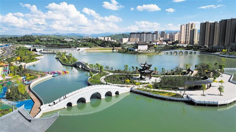 盛夏時節(jié),和政縣龍泉湖公園綠樹環(huán)繞,風光秀麗,藍天白云與碧綠的湖水構成一幅美麗的生態(tài)畫卷。新建的龍泉湖公園集綠道、觀光、旅游等多功能于一體,成為居民和游客休閑娛樂的好去處。