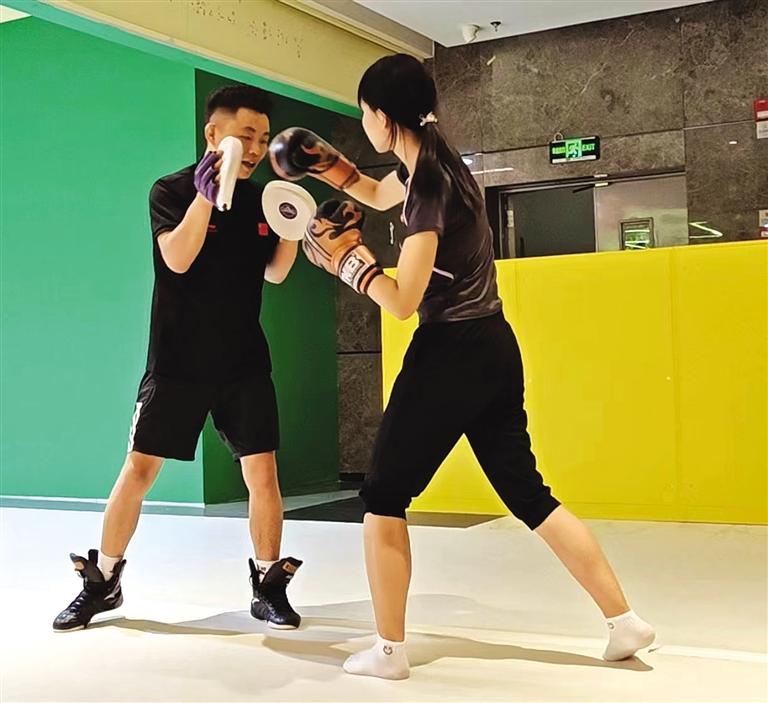 在實(shí)習(xí)之余,李王嘉楹報(bào)了一個(gè)自由搏擊課程來(lái)調(diào)劑生活。“學(xué)習(xí)防身術(shù)還能強(qiáng)身健體。”李王嘉楹說(shuō),在訓(xùn)練過(guò)程中,跟著教練一步一步訓(xùn)練,揮拳的那一刻,可以把所有的情緒都發(fā)泄出來(lái),一場(chǎng)下來(lái)身心放松。話語(yǔ)中洋溢著自我提升的渴望和對(duì)未來(lái)的憧憬。