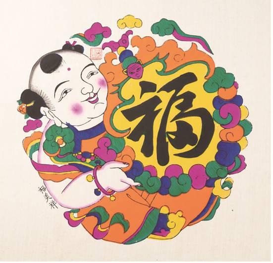 福美祥年畫作坊的新版年畫《福祿壽禧》之《福》