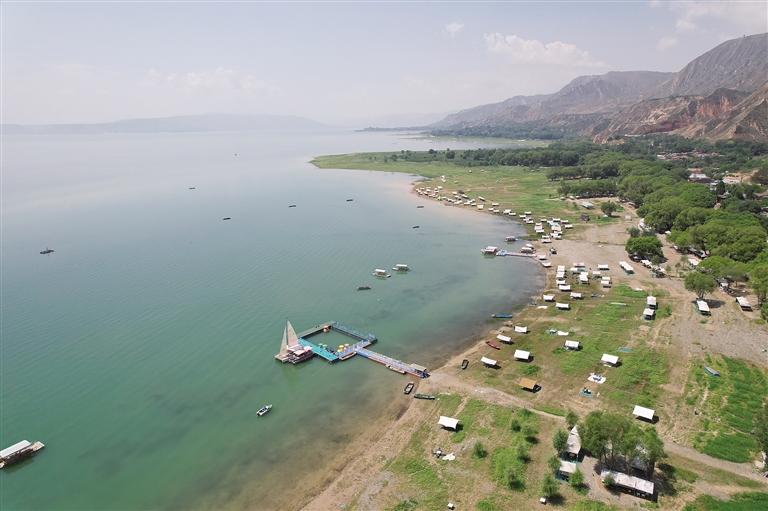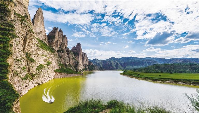 提及永靖劉家峽,第一反應(yīng)就是一個成語——“涇渭分明”。受上游降水影響,洮河河水比較渾濁,在與黃河交匯處劉家峽水庫的清波“相遇”時,形成一清一黃兩股水流,河流呈“Y”字形交匯。交融卻不滲透,加上河中的石山,猶如兩條巨龍游戲于此,在當(dāng)?shù)剡@一景象也被稱為“二龍戲珠”。初秋時節(jié),來自全國各地的游客站在黃洮交匯觀景臺上,感受這份來自大自然的震撼與壯美,從高處遠眺入河口,“黃河清,洮河黃”,可謂“涇渭分明”,景色極為壯觀。