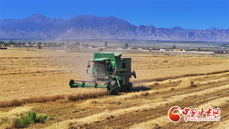 眼下,位于祁連山下的民樂縣南古鎮(zhèn)毛城村800畝連片小麥種植基地上,機聲隆隆,農(nóng)機手們駕駛收割機穿梭往返麥田之中搶收小麥,一派忙碌的豐收景象。近期,隨著民樂縣沿祁連山冷涼山區(qū)小麥迎來成熟季,民樂縣種植的26萬畝小麥進入了繁忙的收割期。