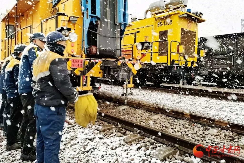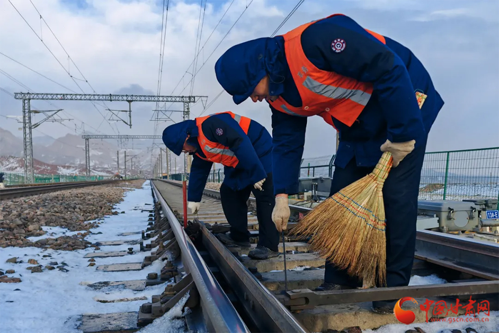 武威工務(wù)段芨嶺、山丹線(xiàn)路車(chē)間以雪為令,組織干部職工清掃道岔尖軌、滑床板、轉(zhuǎn)轍機(jī)等關(guān)鍵部位的積雪積冰,確保線(xiàn)路狀況良好。