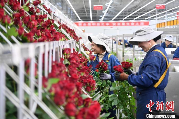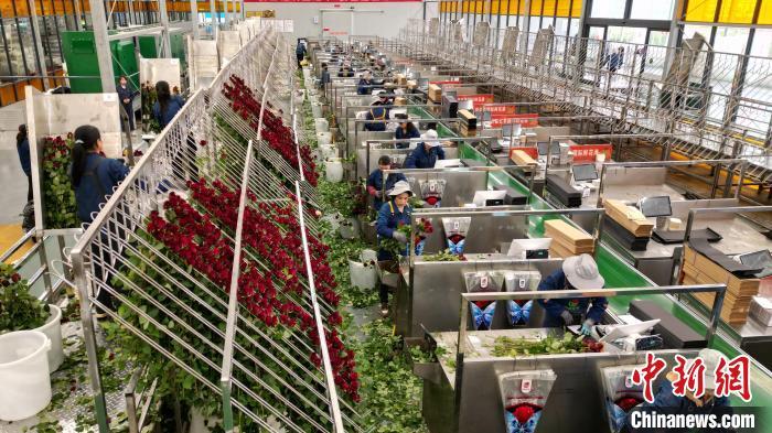 目前,當地建成面積20萬平方米高新智能化溫室,鮮花四季盛開。記者看到,棚頂紅色的全自動補光燈正在為玫瑰“延長光照時長”。精準控制營養(yǎng)液成分和濃度的智能化水肥一體化系統、自動化分選等高新設備投入,科技種植和品質上升,讓臨夏成為中國重要的優(yōu)質鮮切花生產基地,日產20萬枝鮮切花,海內外訂單不斷。