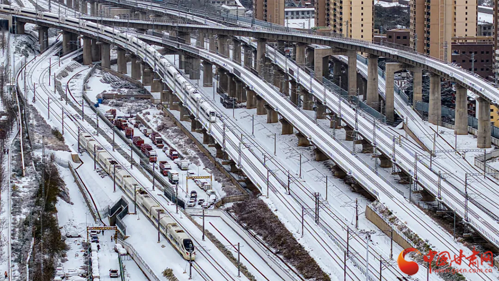 鐵道線宛如銀色的綢帶穿城而過,將城市的喧囂與遠(yuǎn)方的寧靜巧妙地連接在一起。一列列火車整齊地排列在鐵軌上,宛如一條條“鋼鐵巨龍”,靜靜地蟄伏,等待著喚醒它們的汽笛??焓詹剡@屬于冬日鐵路的專屬浪漫!