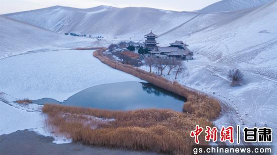 12月10日,甘肅敦煌迎來今年入冬以來的第二場降雪。雪后的鳴沙山月牙泉景區(qū)風景如畫,吸引了眾多游客前來賞雪景、拍照打卡。王斌銀 攝