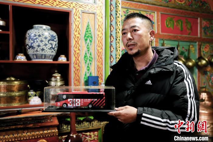 12月22日,藏文書(shū)法家昂旺曲批展示收藏的車(chē)模型。中新社記者 薛蒂 攝